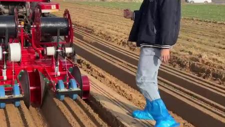 青岛大顺牵引式气吸蔬菜播种机,可一次性完成旋耕起垄滴灌气吸播种压实等功能,株距行距精准可调
